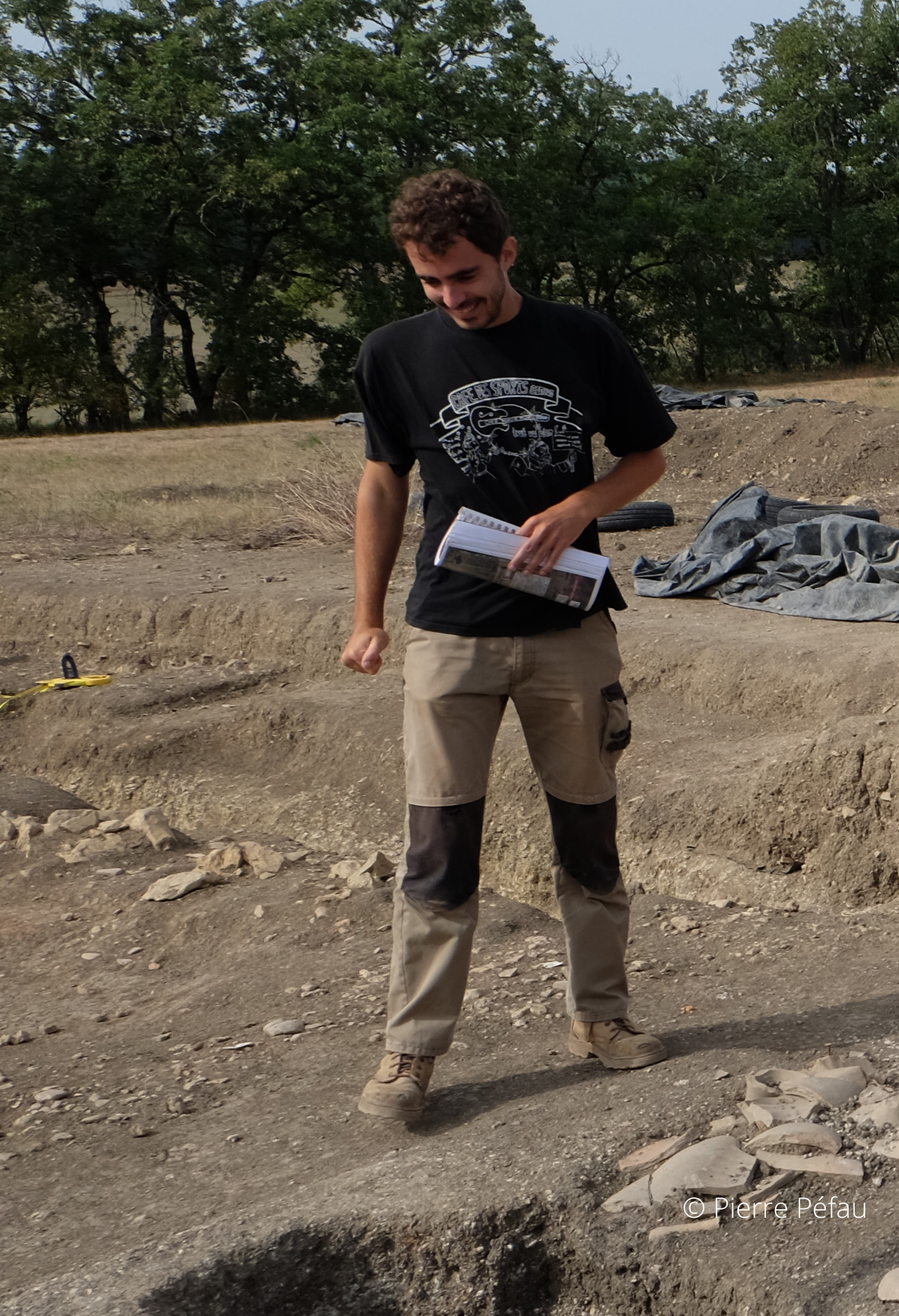 Pierre est également présent dans le milieu associatif. Cette belle histoire avec les associations débute quand il était encore à l’université au sein de l’APAREA. Ensuite, il rejoint CERAGas où il rencontre notre actuelle responsable Pauline Ramis ! Il s’occupe du volet médiation et valorisation, il fait visiter des sites archéologiques, des musées… Actuellement, Pierre est adhérent dans trois associations, AFEAF, Réseau Terre et Grottes&Archéologies. Il a rejoint autant d’associations par passion, pour développer ses projets collectifs, mais aussi pour valoriser l’archéologie auprès du plus grand nombre et rendre les recherches récentes accessibles à tous types de publics.